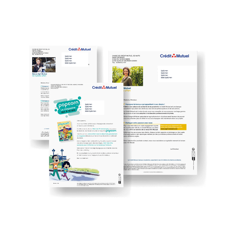 3ma group accompagne le Crédit Mutuel dans la gestion et l’envoi de ses campagnes de marketing direct. De la personnalisation des courriers, à leur impression jusqu’à l’envoi du mailing. Grâce à notre cellule Postale intégrée nous proposons au Crédit Mutuel un tarif d’affranchissement avantageux.